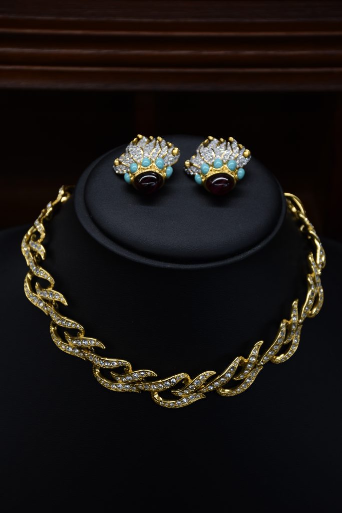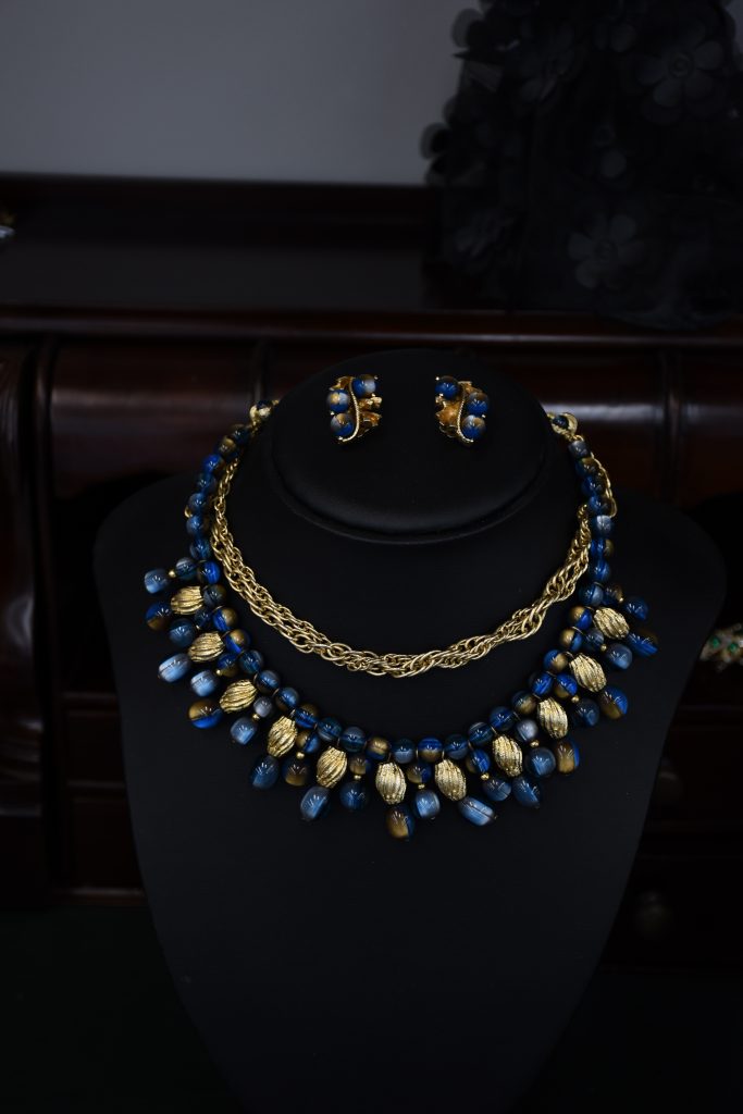 Kramer Tiger Blue Necklace & Clip-on Earrings